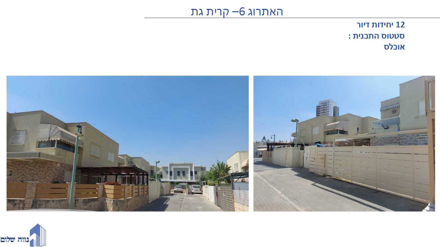נווה שלום יזמות ובניה בע"מ הינה הזרוע הקבלנית והמבצעת של הקבוצה ומסווגת ברשם הקבלנים ג' 3 בענף 100 . תפקידה של החברה היא לבצע עבור הקבוצה את ביצוע הפרוייקטים בפועל. בימים אלו פועלת החברה לקידום סיווגה לג' 4.
